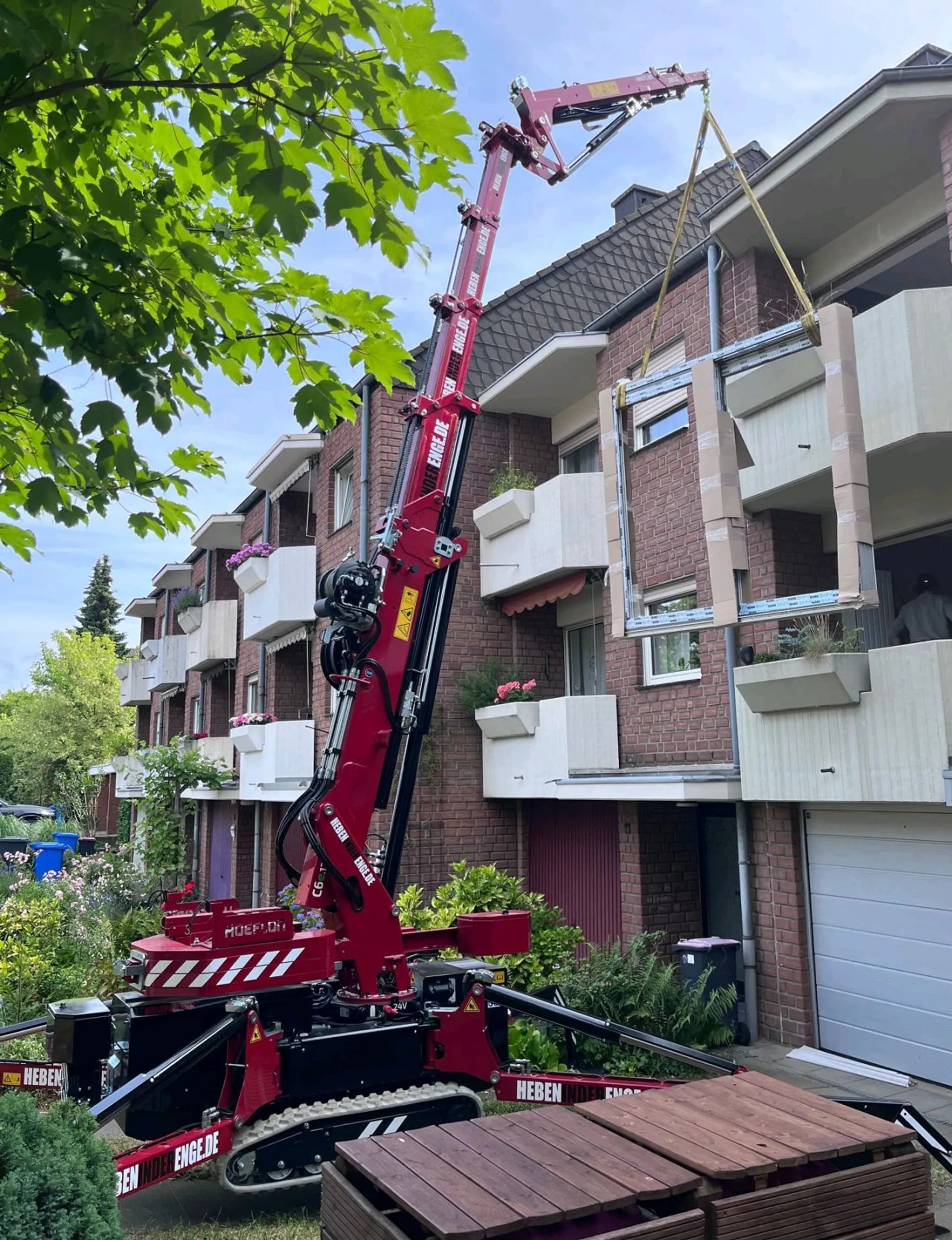 Las minigrúas Hoeflon ofrecen una solución en lugares donde los equipos de elevación tradicionales resultan insuficientes. Piense en obras estrechas, proyectos en zonas céntricas o superficies vulnerables. Gracias a su tamaño compacto, alta capacidad de elevación y precisos sistemas de control, las minigrúas pueden colocar fácilmente elementos pesados de madera, como cerchas, paneles de fachada y viguetas, en el lugar adecuado.