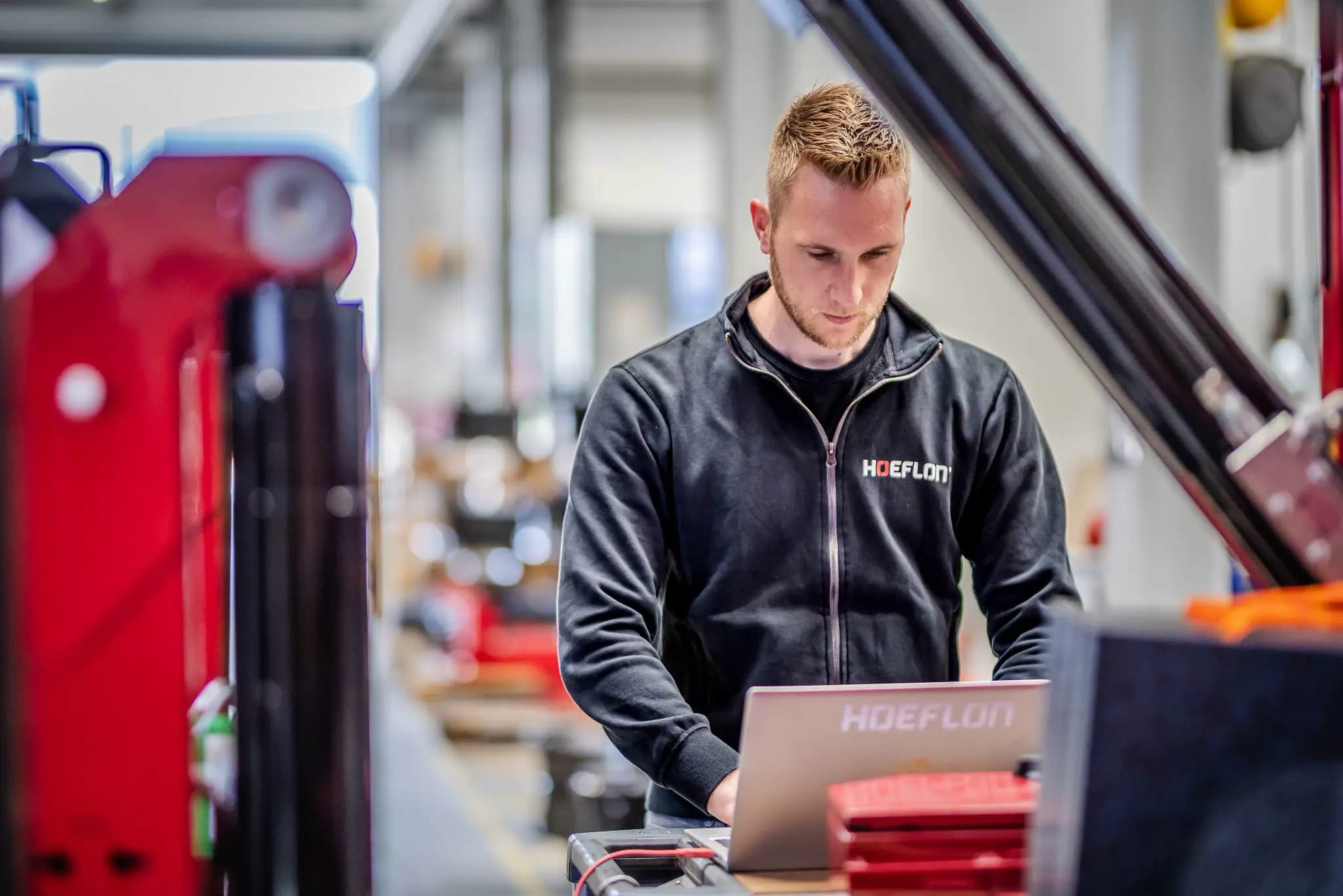 Hoeflon ofrece un servicio posventa de alta calidad a través de una red mundial de distribuidores y socios de servicio autorizados. Ofrecen mantenimiento, reparaciones y repuestos para que su minigrúa esté siempre en óptimas condiciones. Nuestro equipo de expertos dedicados apoya a estos socios con conocimientos técnicos, capacitación y ayuda rápida cuando sea necesario. A través de nuestro portal de servicio en línea, Hoeflink, tenemos información en tiempo real sobre su grúa y podemos ayudarle rápidamente.