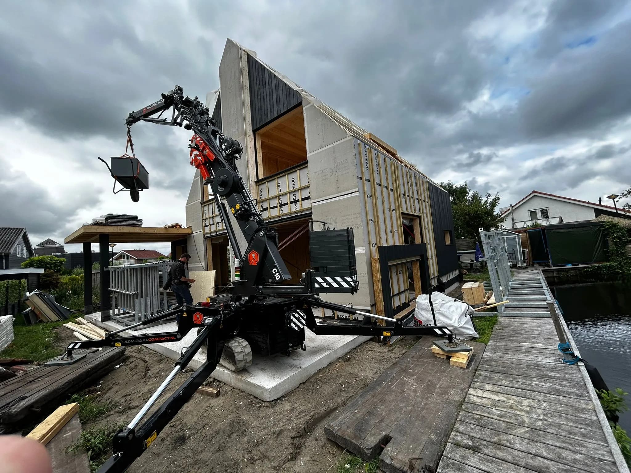 "Usamos la Hoeflon principalmente para espacios reducidos", explica Bart. "Llegamos a lugares donde una grúa más grande simplemente no puede. Es prácticamente lo que pasa a diario. La C10 también es bastante potente, lo que nos permite fabricar nuestros elementos de mayor tamaño".